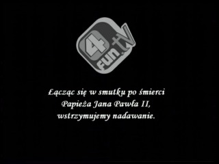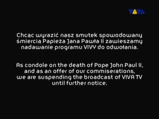 | 03/04/05: Viva Polska and 4fun.tv are just two among several polish channels, which have stopped broadcasting to commemorate the Pope's death. |