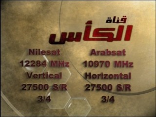 | 26/04/05: infocard from Alkass, new on Nilesat, 7° west, and Arabsat, 26° east, on the frequencies shown above. | |||||||||||