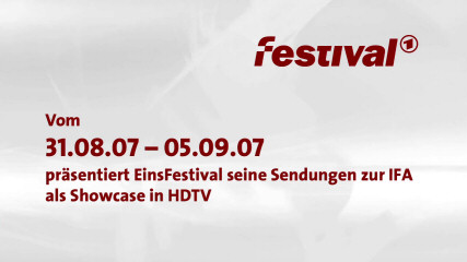 | 21/08/07: EinsFestival HD, new from Germany, from the 31st August to the 5th of September on Astra, 19°.2 east 12421 H 27500 3/4 id: EinsFestival HD provider: ARD network: ASTRA framesize: 1280 x 720 |