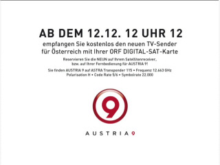 11/12/07: infocard from Austria 9 TV, on Astra 1, 19° east 12663 H 22000 5/6 id: AUSTRIA 9 TV provider: AUSTRIA 9 TV framesize: 720 x 576 |