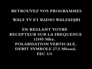 | 22/12/07: infocard from Walf TV, on HotBird, 13° east 12692 H 27500 3/4 id: TEST O SP TV provider: AB SAT network: EUTELSAT framesize: 544 x 576 |