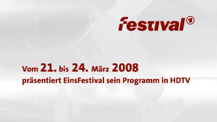 | 19/03/08: infocard and promo from Eins Festival HD on Astra 1, 19°.2 east 12421 H 27500 3/4 id: Einsfestival HD provider: ARD framesize: 1280 x 720 |