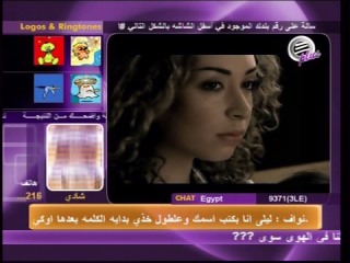 | 14/10/05: promo from Sham TV, on Arabsat, 26° east, 12597 V 27500 3/4 id: Sham TV provider: Harmonic network: SAMACOMJAB framesize: 352 x 576 |